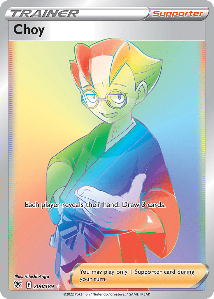 The artwork is frequently cartoonish and anime-oriented, with an emphasis on character-forward staging and clear, balanced compositions that often shift into dynamic action. Color is typically vibrant and contrasting, supporting energetic, playful, and cheerful moods. Notable examples include Shining Lugia (SM Black Star Promos). Among the most sought-after cards illustrated by Hitoshi Ariga is Sabrina's Suggestion (SM—Team Up).