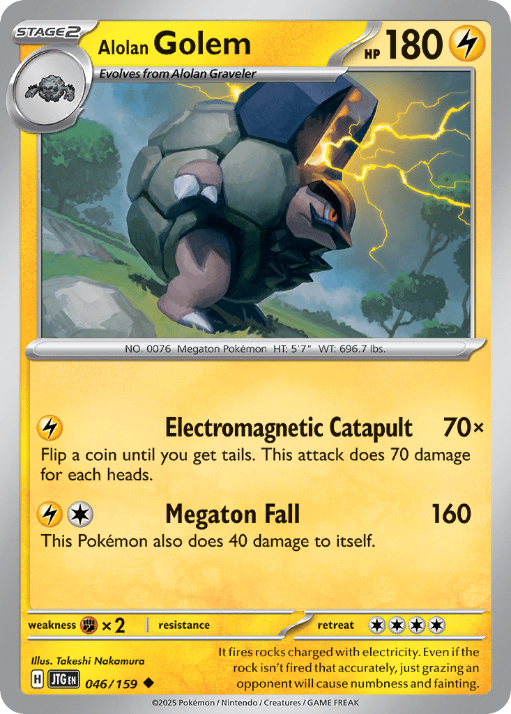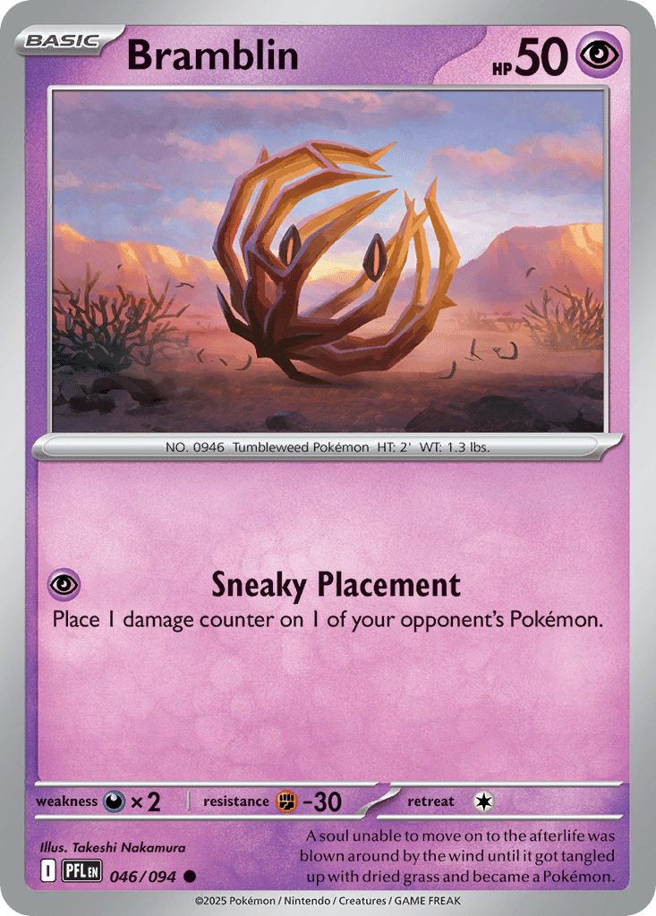 Credited from 2022 through 2025, Takeshi Nakamura’s Pokémon TCG work appears primarily in the Scarlet & Violet series, with placements including Paradox Rift, Temporal Forces, and 151. Across these releases, the illustrations favor clear readability and character-first presentation, often organizing the scene with balanced structure and a firm foreground emphasis.