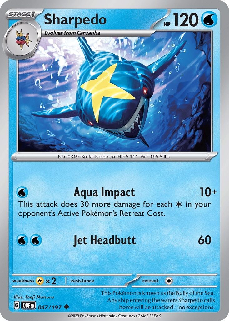 Across these cards, Matsuno’s approach reads as digital and colorful, with vibrant, contrasting palettes that keep subjects crisp against energetic surroundings. Compositions tend to be tightly focused and frequently action-oriented, using foreground emphasis and balanced framing to clarify movement and silhouette. The mood range skews dynamic and intense, while occasional playful notes soften the pacing without losing clarity. A representative example is Kingdra (sv4-32). Among the most sought-after cards illustrated by Tonji Matsuno is Yanmega ex (sv10-228).